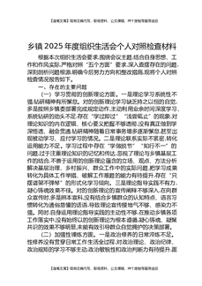 乡镇2025年度组织生活会个人对照检查材料.docx