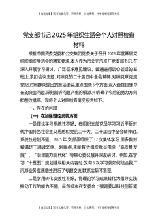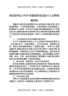 党支部书记2025年度组织生活会个人对照检查材料.docx