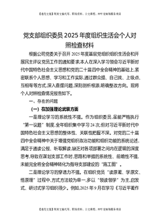 党支部组织委员2025年度组织生活会个人对照检查材料.docx