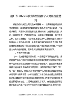 副厂长2025年度组织生活会个人对照检查材料.docx