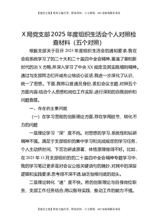 X局党支部2025年度组织生活会个人对照检查材料(五个对照).docx