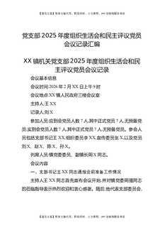 XX镇机关党支部2025年度组织生活会和民主评议党员会议记录.docx