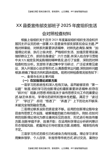 XX县委宣传部部长2025年度组织生活会对照检查材料.docx