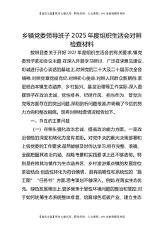 乡镇党委领导班子2025年度组织生活会对照检查材料.docx
