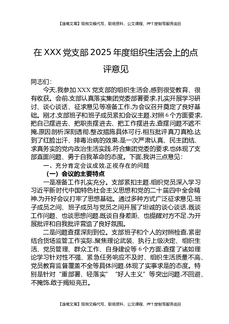 在XXX党支部2025年度组织生活会上的点评意见.docx