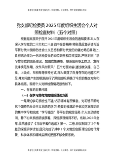 党支部纪检委员2025年度组织生活会个人对照检查材料(五个对照).docx