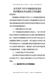 关于召开2025年度基层党组织组织生活会和开展民主评议党员工作的通知.docx