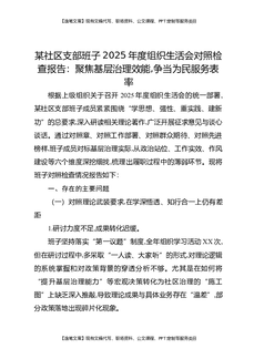 某社区党支部班子2025年度组织生活会对照检查报告:聚焦基层治理效能,争当为民服务表率.docx