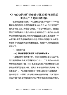XX市公交汽修厂党支部书记2025年度组织生活会个人对照检查材料.docx