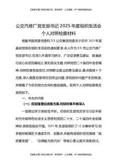 公交汽修厂党支部书记2025年度组织生活会个人对照检查材料.docx