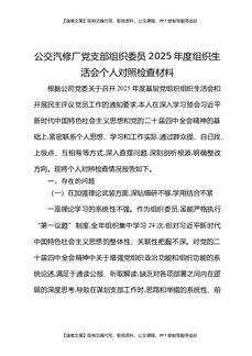 公交汽修厂党支部组织委员2025年度组织生活会个人对照检查材料.docx