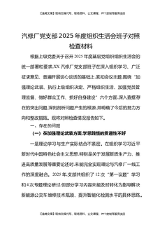 汽修厂党支部2025年度组织生活会班子对照检查材料.docx