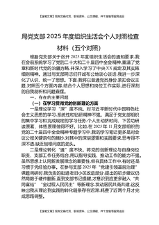 局党支部2025年度组织生活会个人对照检查材料(五个对照).docx