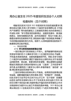 局办公室主任2025年度组织生活会个人对照检查材料(五个对照).docx