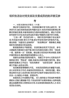 组织生活会对党支部及支委成员的批评意见参考.docx