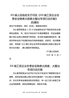 XX镇人民政府关于印发《XX镇工贸企业冬季安全隐患大排查大整治专项行动方案》的通知.docx