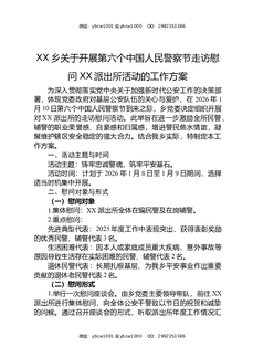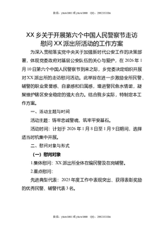 XX乡关于开展第六个中国人民警察节走访慰问XX派出所活动的工作方案.doc