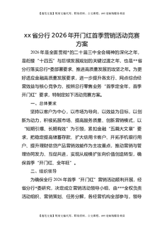 XX省分行2026年开门红首季营销活动竞赛方案.docx