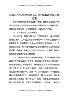 XX市工业和信息化局2025年党风廉政建设工作方案.docx
