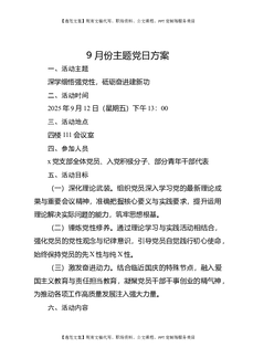 2025年9月党支部“三会一课”方案参考(精品).docx
