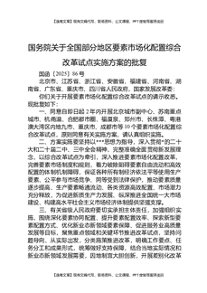 国务院关于全国部分地区要素市场化配置综合改革试点实施方案的批复.docx