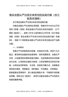 落实全面从严治党主体责任的实施方案(含三张责任清单).docx