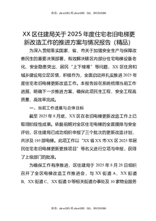 XX区住建局关于2025年度住宅老旧电梯更新改造工作的推进方案与情况报告(精品).docx