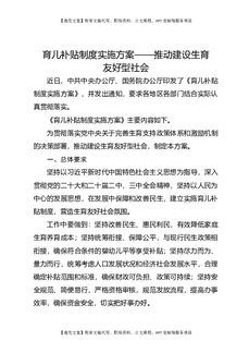 育儿补贴制度实施方案——推动建设生育友好型社会.docx