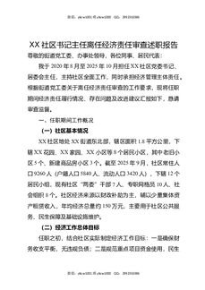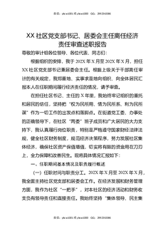 XX社区党支部书记,居委会主任离任经济责任审查述职报告.docx