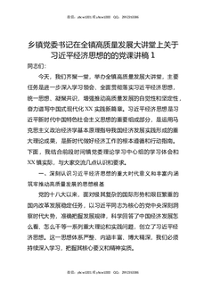乡镇党委书记在全镇高质量发展大讲堂上关于总书记经济思想的的党课讲稿2.docx
