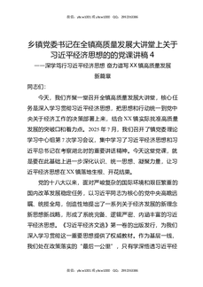 乡镇党委书记在全镇高质量发展大讲堂上关于总书记经济思想的的党课讲稿4.docx