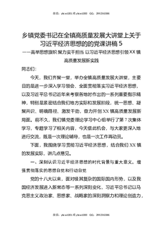 乡镇党委书记在全镇高质量发展大讲堂上关于总书记经济思想的的党课讲稿5.docx