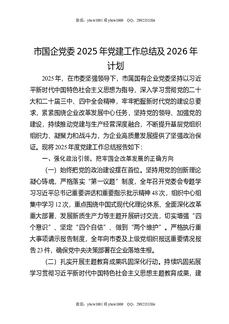 市国企党委2025年党建工作总结及2026年计划.docx