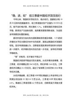 “稳,进,韧”前三季度中国经济顶压前行.docx