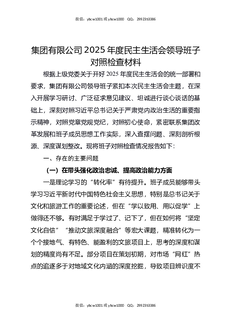 集团有限公司2025年度民主生活会领导班子对照检查材料.docx
