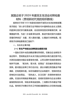 某国企班子202X年度民主生活会对照检查材料(贯彻新时代党的组织路线).docx