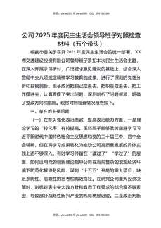 公司2025年度民主生活会领导班子对照检查材料(五个带头).docx