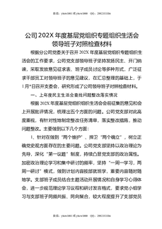 公司202X年度基层党组织专题组织生活会领导班子对照检查材料.docx
