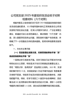 公司党支部2025年度组织生活会班子对照检查材料(六个对照).docx