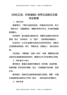 《共抗艾滋,共享健康》世界艾滋病日防艾主题班会教案.docx