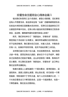 珍爱生命主题班会心得体会篇1.docx