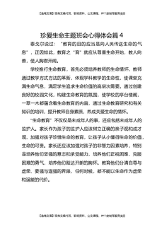 珍爱生命主题班会心得体会篇4.docx