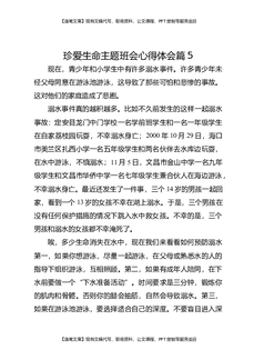 珍爱生命主题班会心得体会篇5.docx