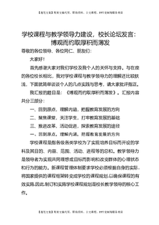 学校课程与教学领导力建设,校长论坛发言:博观而约取厚积而薄发.doc
