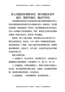 新上任副校长就职讲话:努力做到主动不越位,服务不偏位,融洽不空位.docx