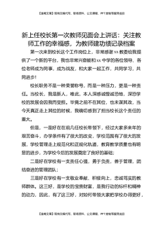 新上任校长第一次教师见面会上讲话:关注教师工作的幸福感,为教师建功绩记录档案.docx