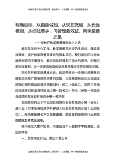校长在教学质量推进会上讲话:明确目标,从自身做起,从现在做起,从长远着眼,从细处着手,向管理要效益,向课堂要质量.docx
