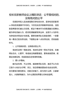 校长在新教师会议上精彩讲话:公平是相对的,没有绝对的公平.docx