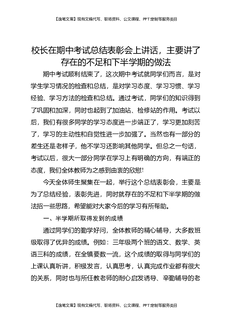 校长在期中考试总结表彰会上讲话,主要讲了存在的不足和下半学期的做法.docx