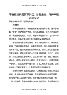 平安夜校长国旗下讲话:珍爱生命,守护幸福,筑牢安全.doc